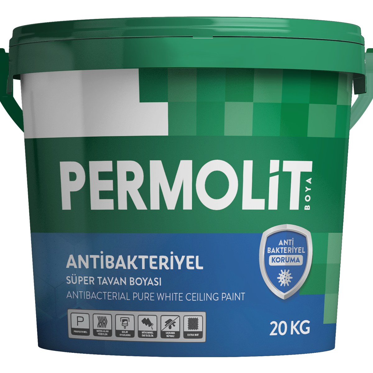 Permolit Antibakteriyel Süper Tavan Boyası, su bazlı, antibakteriyel, tam mat, dekoratif, son kat tavan boyasıdır. Boya öncesi hazırlıkları tamamlanmış her türlü iç cephe yapı elemanları üzerine uygulanabilir. Her yüzeye mükemmel yapışır, örtücülük gücü yüksektir, çatlama, kabarma ve dökülme yapmaz. Teneffüs etme özelliği ile tavanların nefes almasını sağlar. Uygulandığı yüzeylere mat dekoratif bir görünüm kazandırır. Sürüm kolaylığı ve ekstra matlığı sayesinde uygulama kolaylığı sağlar ve yüzey hatalarını göstermez. Banyo, mutfak dahil her yüzeye ilk ve son kat olarak uygulanabilir. Kokusuz, sararmayan bir boyadır.
