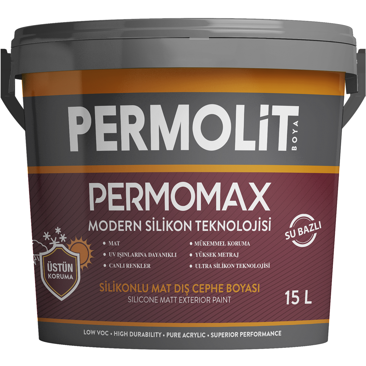 Permomax Silikonlu Mat Dış Cephe Boyası, zorlu atmosfer koşularına dayanıklı, uygulandığı yüzeyleri dış ortamın yıpratıcı etkilerinden uzun yıllar boyunca koruyan dış cephe boyasıdır. Boya öncesi hazırlıkları tamamlanmış her türlü dış cephe yapı elemanları üzerine uygulanabilir. İleri teknoloji ile üretildiği için yüksek örtücülüğe sahip olup, uygulama kolaylığı ve işçilikten tasarruf sağlar. Yüksek su iticiliğine sahip yapısı ile binaları, yağmurdan korur, teneffüs edebilme özelliği ile duvardaki nemin dışarı atılmasını sağlar.